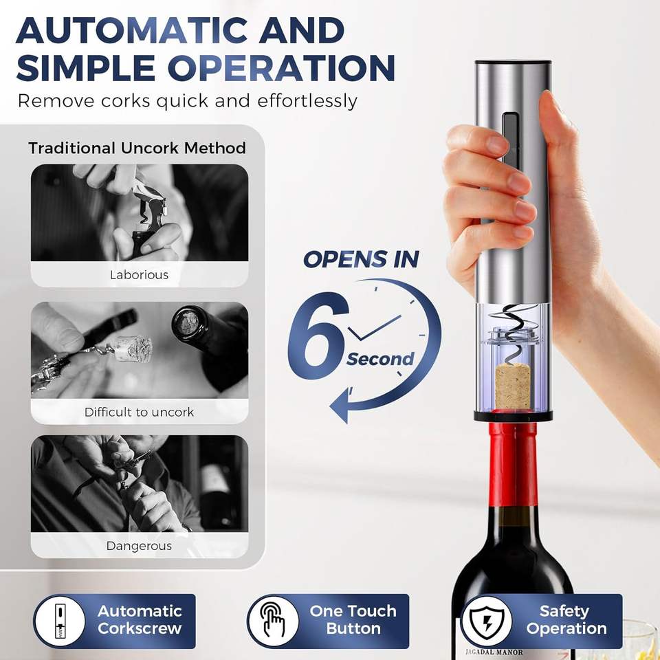 Electric Wine Opener Set (Wine Pourer, Vacuum Stopper, Foil Cutter & Stand).